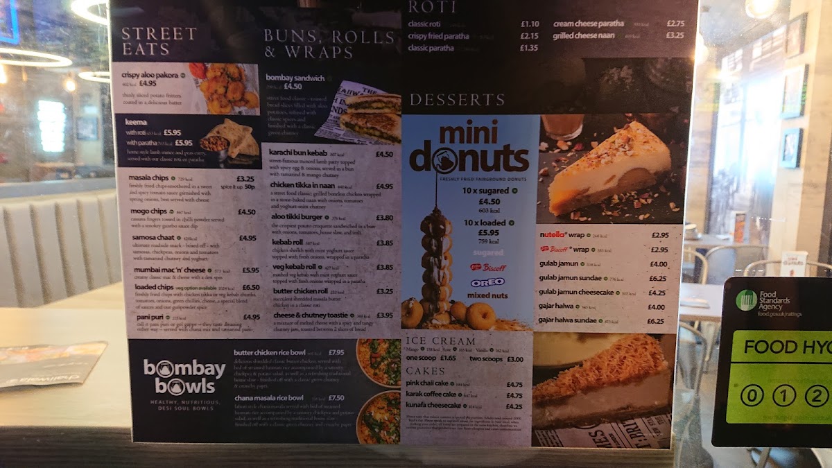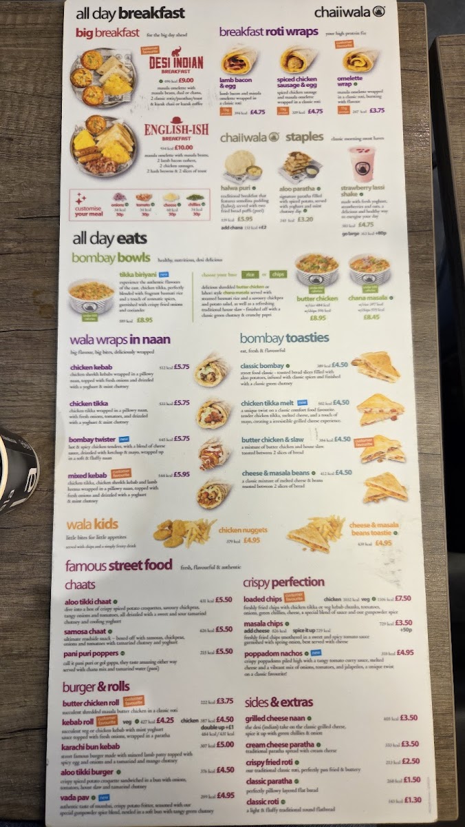 - For those seeking a lighter bite, the Veg Kebab Roll (£3.85) and Butter Chicken Roll (£3.25) serve as delectable handheld options.